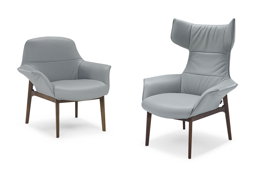 Aura chair is a blend of craftsmanship and modernity. The innovative design is characterized by the elegant shape of the feet, available in different wood finishes, which support a generous, comfortable seat. Whether in the living room or the bedroom, Aura adds style to your interior.