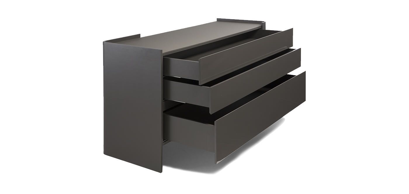 Furniture range for the bedroom, chest of drawers and night stands to match the fenice bed. Sleek, pure design that amplifies the cosy feel created by the bed’s large padded headboard.