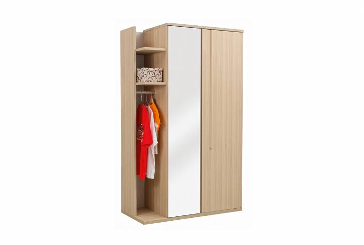 Providing particularly well designed storage space, the Gautier 2 door wardrobe is functional as well as offering a designer look. Practical as well as aesthetic, it is equally divided into hanging and shelving space as well as providing two shelves and exterior hanging space.