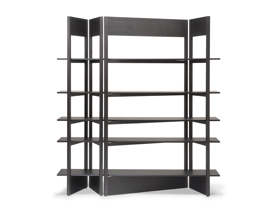 On the model of 19th-century screens, Vasilev created a wall unit that, while inspired by the past, embodies decidedly contemporary concepts: the result is Plissé, a hybrid object that combines two apparently distant realities. The visual airiness of Plissé conceals a solid structure consisting of modular panels, held together by supporting shelves.