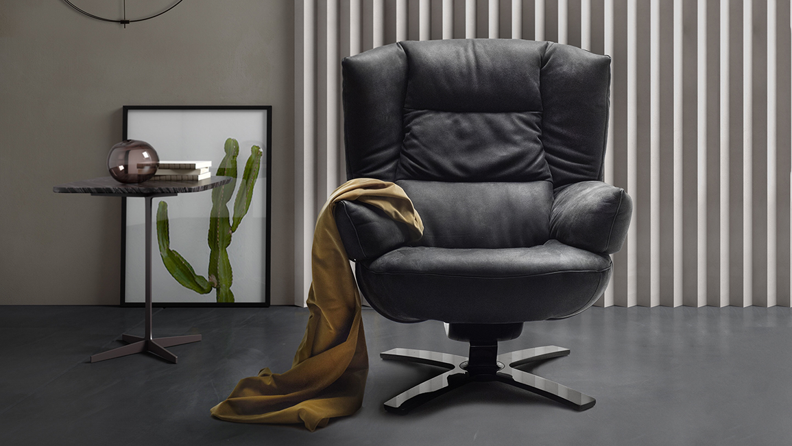Re-vive Shuttle is casual, cosy and inviting, setting new standards for custom comfort. A Mauro Lipparini design, this armchair sports large wings that convey a sense of protection and wellbeing. The ultra ergonomic seat and wraparound arms are an invitation to relax and unwind. Ample in size, the Shuttle flaunts a streamlined look resulting from the elegant piping. Soft, unstructured padding provides an ideal escape for reading, listening to music or losing yourself in total relaxation.