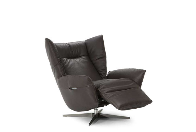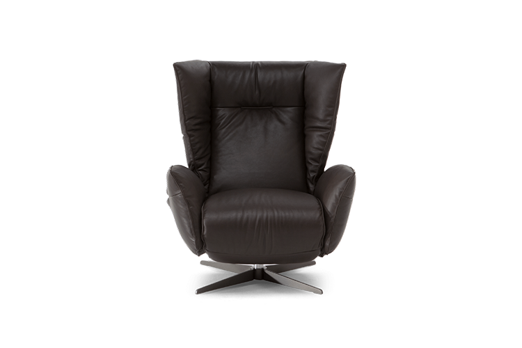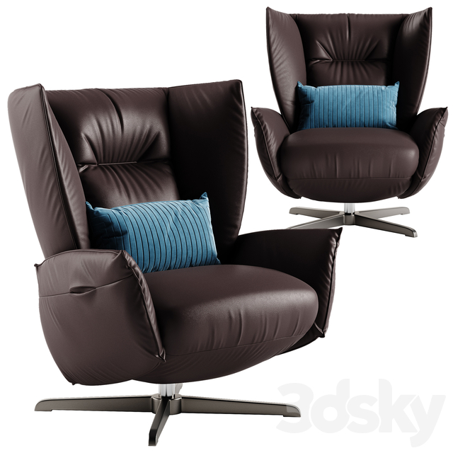 Armchair with a pewter-colored swivel base with an incredibly enveloping design, like a nest of cushions in which you can completely lose yourself.